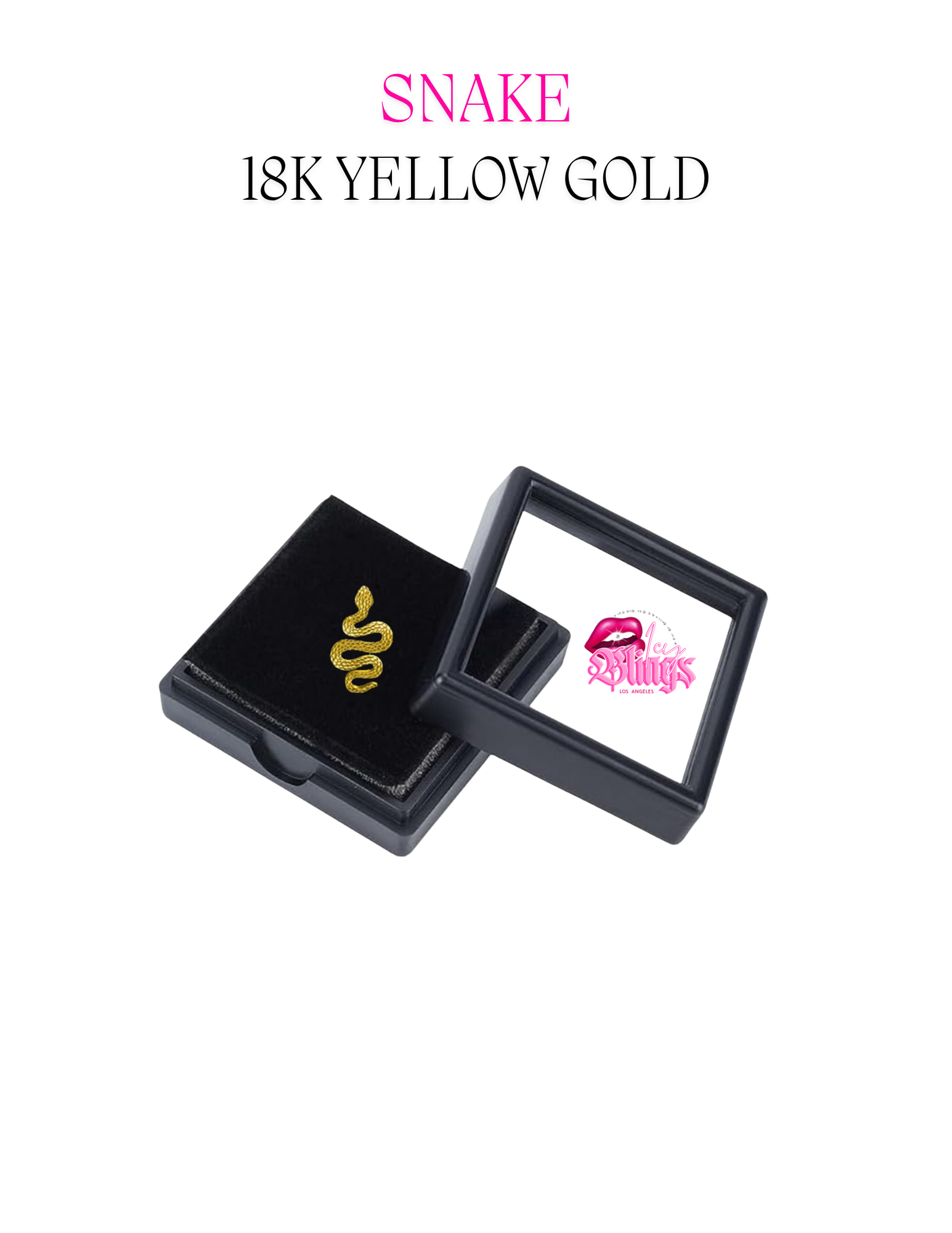 Introducing our 18K snake charm at icyblingsla, available in both yellow and white gold. This stylish charm is safe and will not tarnish or stain your teeth. Sold individually, with an estimate size of 3mm x 4mm. Elevate your jewelry collection with this timeless piece.