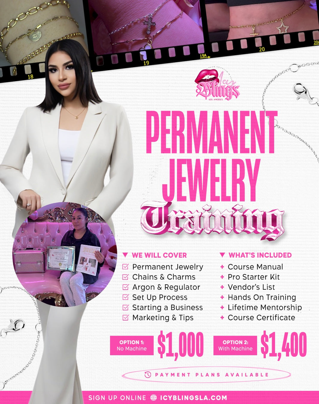Get certified in tooth gems, teeth whitening, and permanent jewelry with 3 Combo Training 1:1. This comprehensive training includes starter kits, ebooks, and certifications. Plus, you can add a welder machine after the class. Become an expert in these lucrative beauty services today!