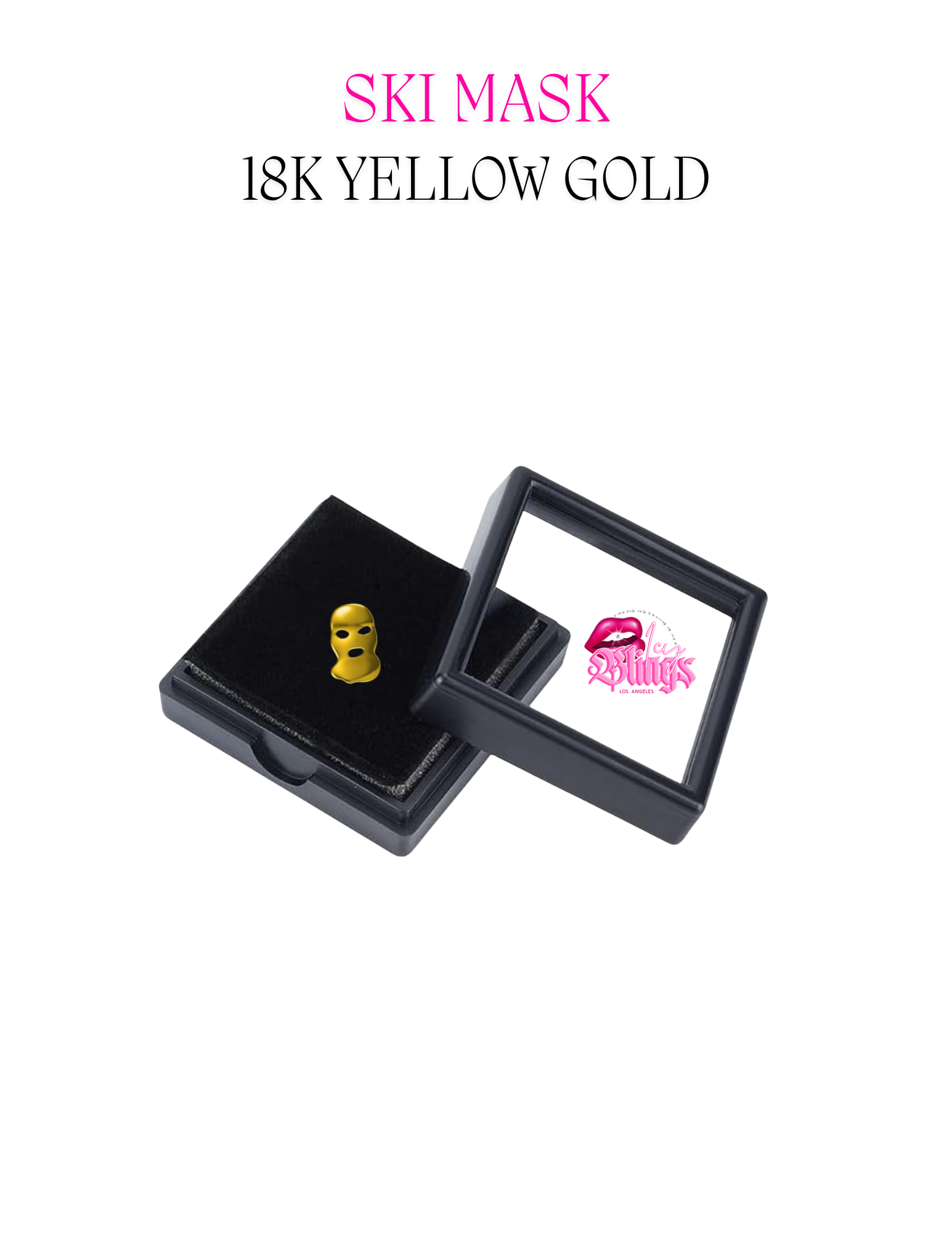 Introducing our 18K ski mask charm at icyblingsla, available in both yellow and white gold. This stylish charm is safe and will not tarnish or stain your teeth. Sold individually, with an estimate size of 3mm x 4mm. Elevate your jewelry collection with this timeless piece.